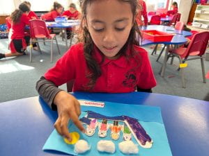I made a purple waka. In my waka is my Mum, my Dad and my sister and me.