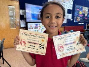 I got two certificates on Athletics Day. I got first in my race and in the Room 19 and 20 high jump.